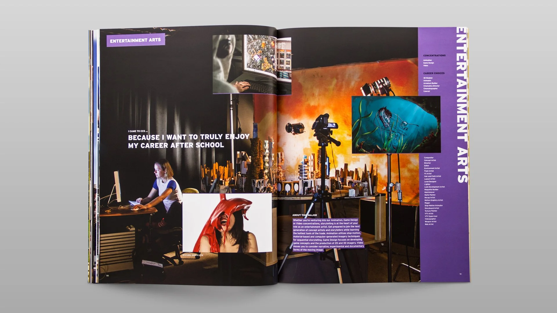 The College for Creative Studies' primary print publication and next-generation undergraduate Viewbook. The book served as a platform for boasting the success and outstanding work of CCS students, alumni stories and information on the college’s world-class facilities. Readers were provided with an interactive experience, promoting self-expression and inspiration through its artful cover graphic printed on vellum transfer paper.