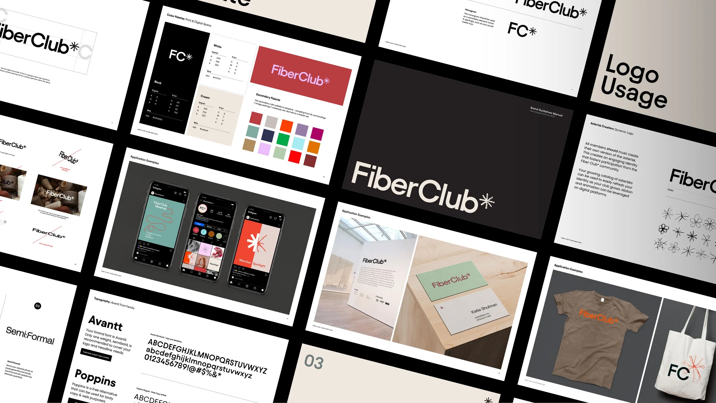 FiberClub* is a community of artists and creative practitioners working in the Detroit Metro area. The FiberClub* name includes an asterisk to represent the expanse and community of the group. The identity utilizes the asterisk to create an engaging identity that allows each member of the own group to create their own asterisk.